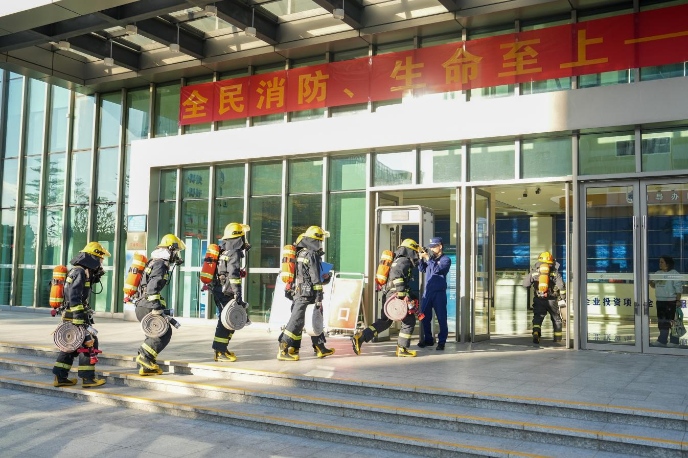 汕尾市市民服務(wù)廣場開展2025年消防應(yīng)急演練